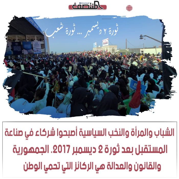 الشباب والمرأة والنخب السياسية أصبحوا شركاء في صناعة المستقبل بعد ثورة ٢ ديسمبر ٢٠١٧. الجمهورية والقانون والعدالة هي الركائز التي تحمي الوطن. المنتصف نت منذ شهر مشاركة الخبر: