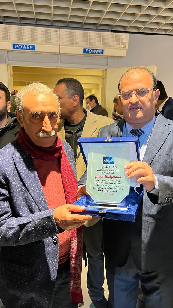 كرمت صحيفة المنتصف، مساء اليوم، بدار الأوبرا المصرية، كلا من الفنان الكبير عبدالباسط عبسي والفنان التشكيلي ردفان المحمدي لدورهما الكبير في إثراء العمل الفني والإبداعي.