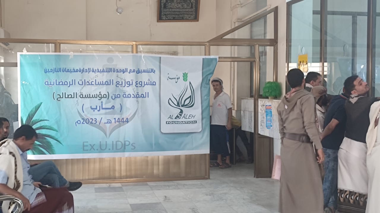 مؤسسة الصالح توزيع المساعدات الرمضانية للنازحين والأسر الفقيرة في مخيمات مارب